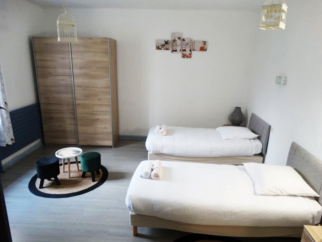 Vous serez acceuilli.e.s à partir du vendredi 17h jusqu'au lundi 17h et logées en chambre partagée (1 très grande chambre de 5p visible dans le diaporama ci dessous, 1 chambre de 3p, 4 chambres de 2p).